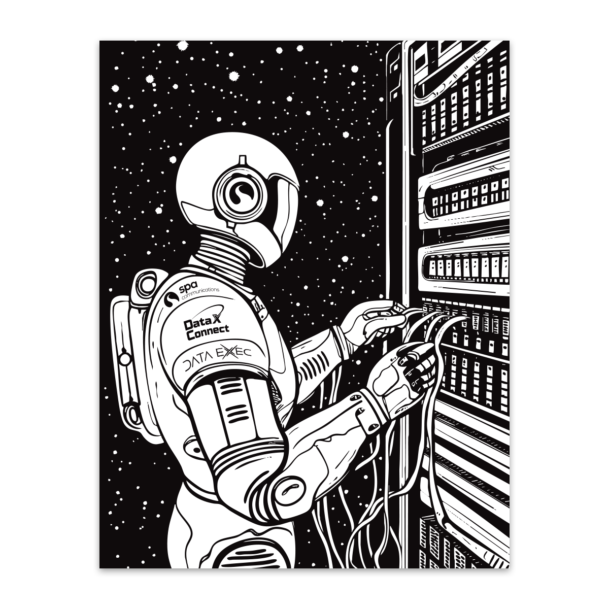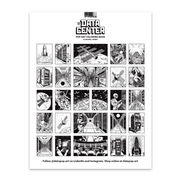 Lift off and enjoy a creative, colorful trip to the future of digital infrastructure in space. Bring orbiting server racks, satellites, and robotic technicians to life with your imagination.